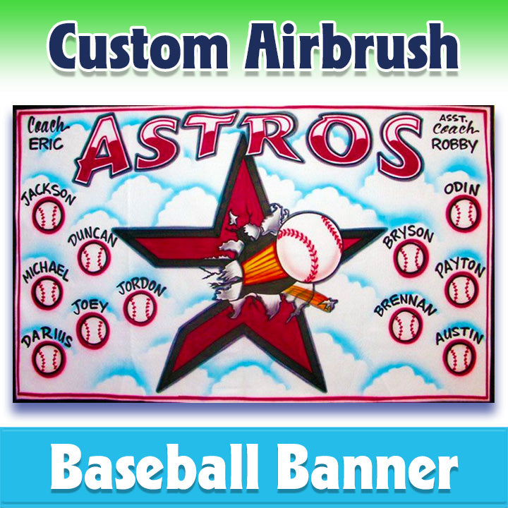 Our artist will use this sample as reference, but will incorporate YOUR team name, YOUR team colors, etc. instead. Artist will use his discretion to determine best layout and may add additional color (for example) if he thinks it will make the banner look better. This allows each hand-painted banner to have the artist’s flair and to be unique!