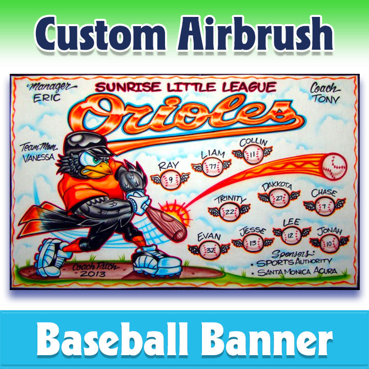 Our artist will use this sample as reference, but will incorporate YOUR team name, YOUR team colors, etc. instead. Artist will use his discretion to determine best layout and may add additional color (for example) if he thinks it will make the banner look better. This allows each hand-painted banner to have the artist’s flair and to be unique!