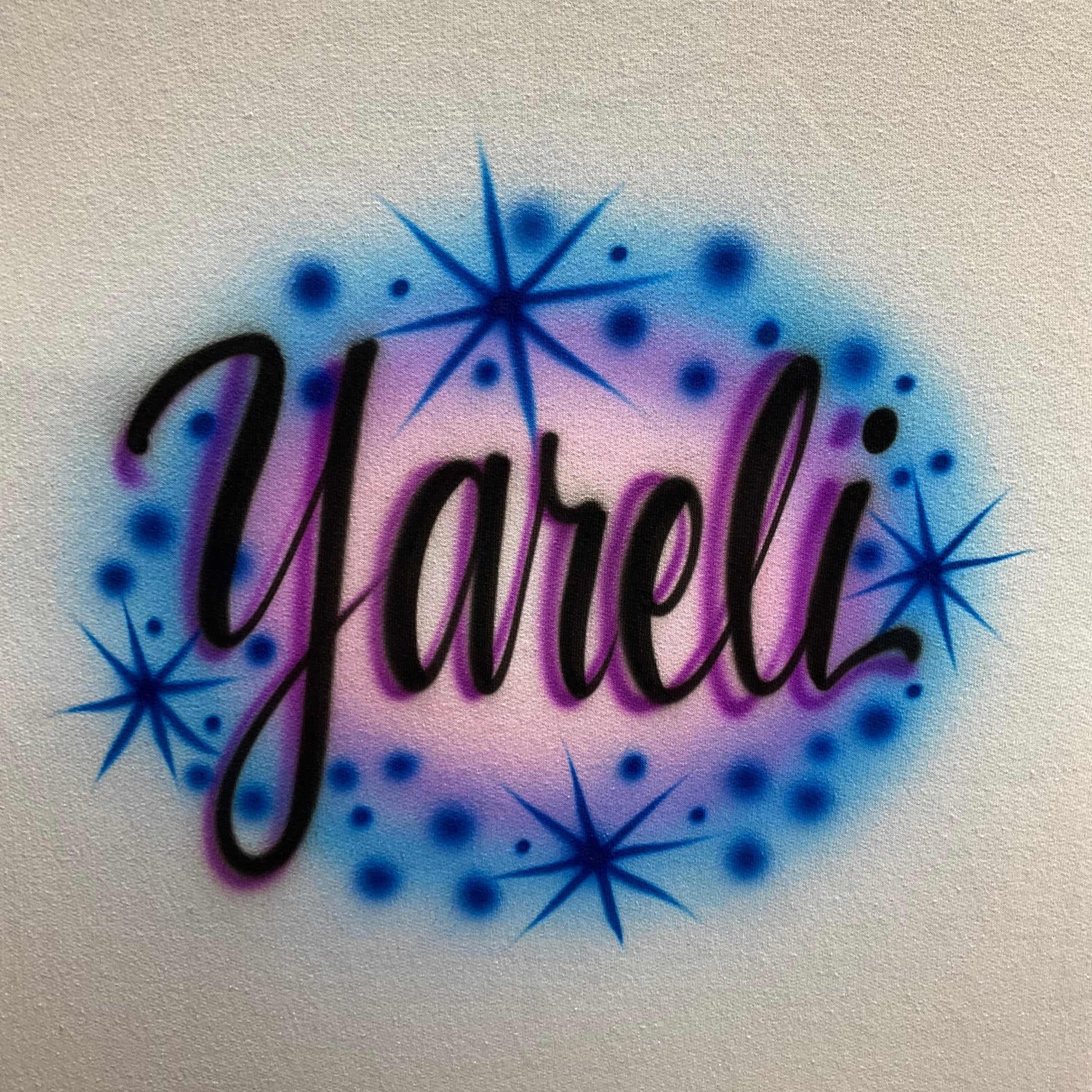 Name airbrushed shirt or sweatshirt with starbursts and accents